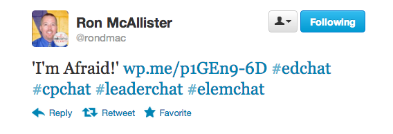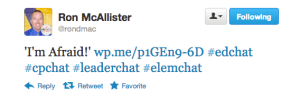 It’s not only students and teachers who are afraid. Sometimes, principals are afraid as well. Our fear struck me upon reading a recent tweet, with a link to a blog post: I’m Afraid!